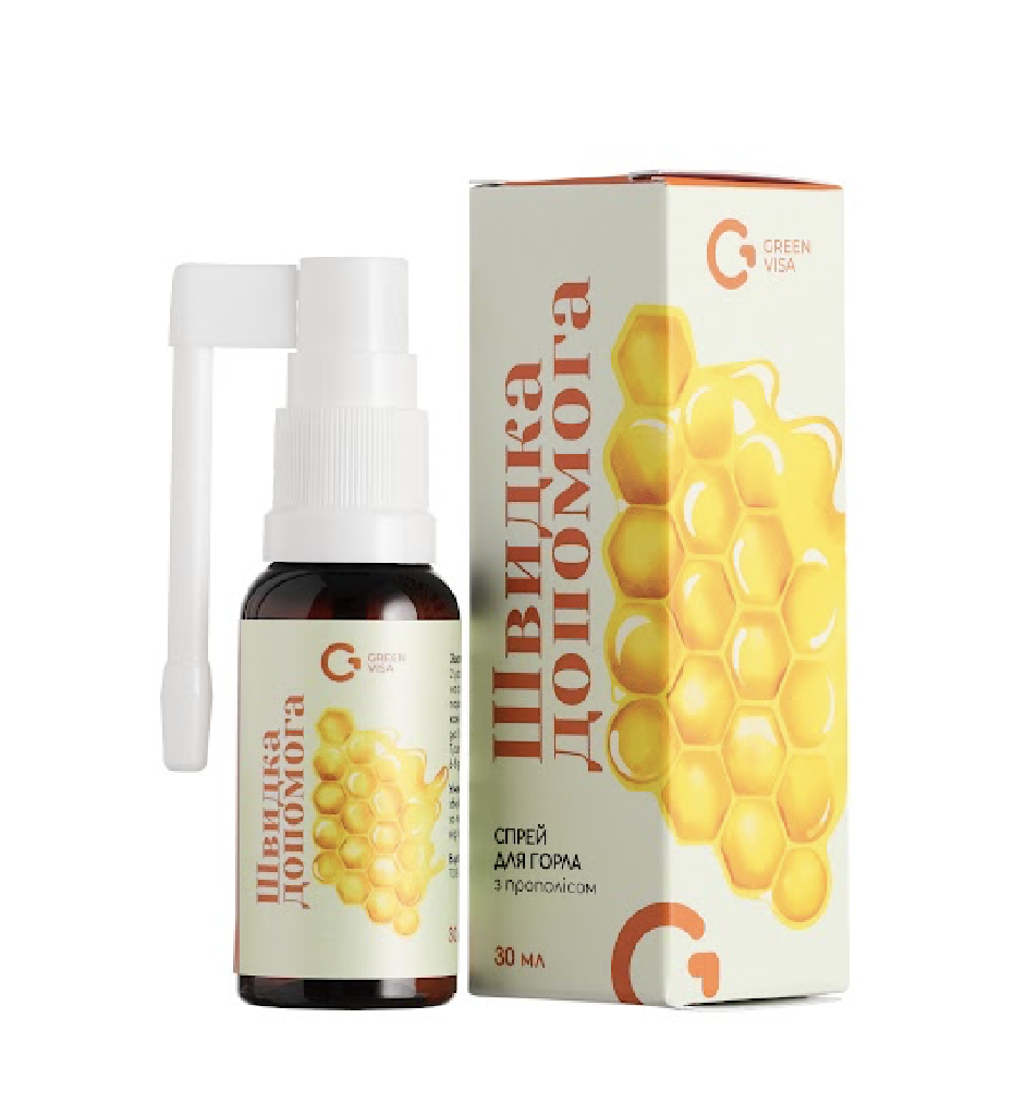 Спрей для горла з прополісом виготовлений на водній основі, містить п'ять висококонцентрованих екстрактів і фітоекстрактів прополісу, кореня лепехи та оману, ромашки, календули.